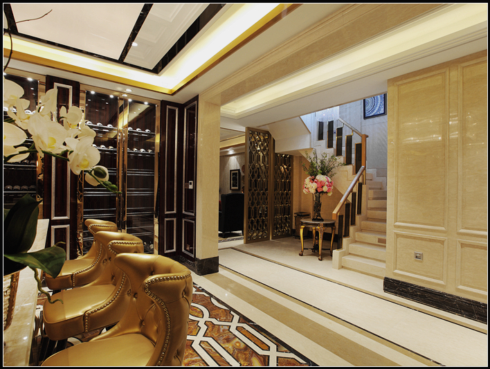 将酒水吧台与家庭电影院结合在一起,如同置身于好莱坞世界。既可以作为洽谈商务的在家办公室,亦是休闲放松的高级会所。