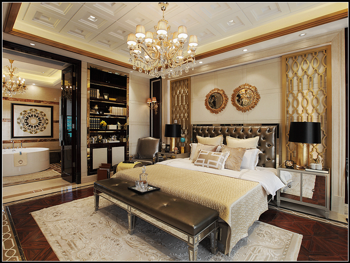 主人房采用开放的设计,减少出入麻烦之余又能达到延伸空间的效果。利用金色,轻易营造奢华、高雅的室内氛围。
