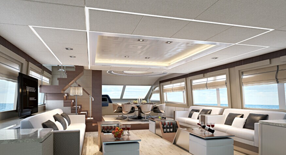 游艇的造型与色彩是构成游艇建筑艺术的两大要素。这里的造型指的是空间形式和舱室界面,而色彩则是游艇的外衣,用以装饰游艇,使每艘游艇都具有不同的特点和气质。