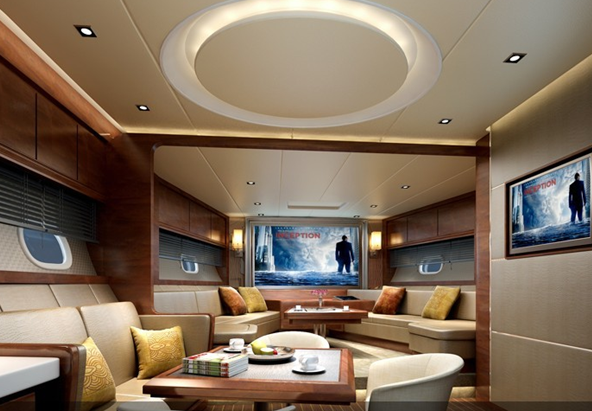 三、对于游艇内的格局设计,我们应尽量避免边角空间的出现。如果有边角空间出现,既降低了艇内空间的利用率,造成无谓的浪费,也会导致艇内视觉上的不和谐。