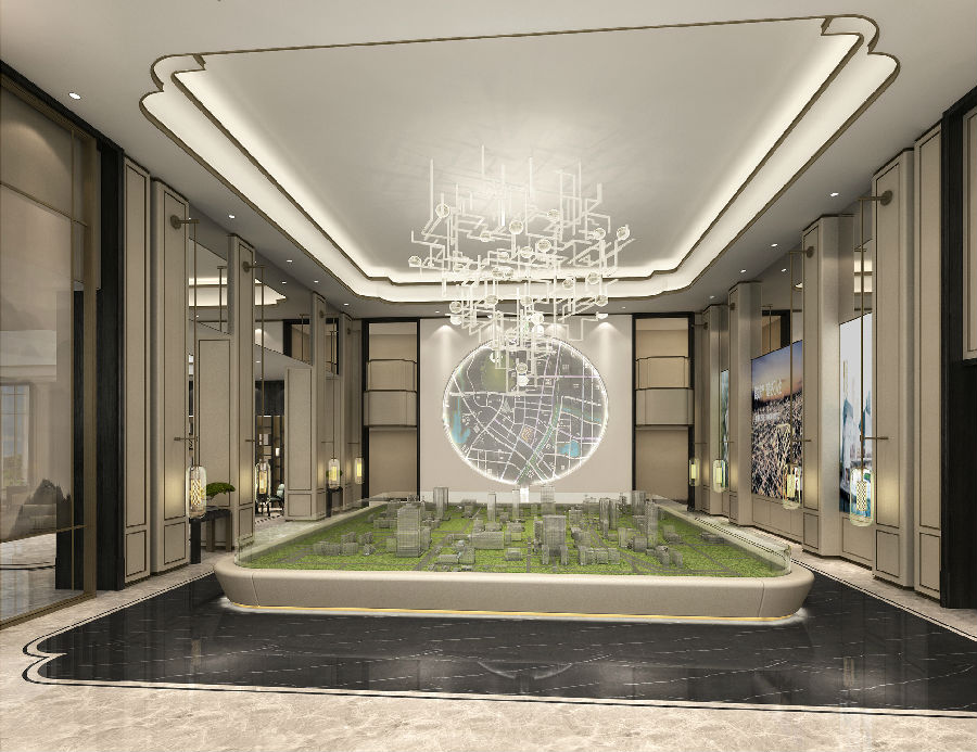 巧妙融合了景物与人之间的互动元素,沙盘周边空间分布合理,动线清晰。