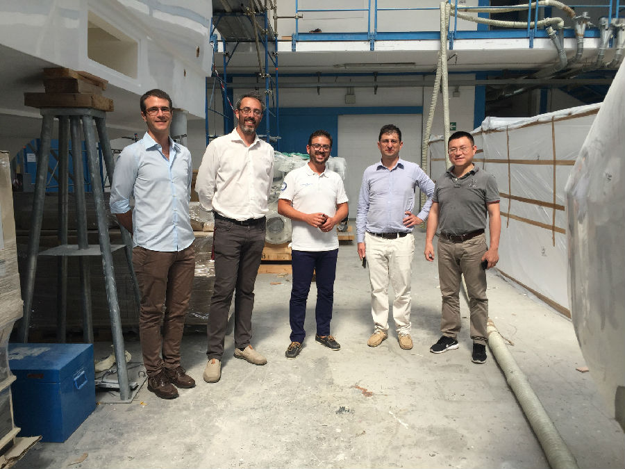 DND道恩代表与阿兹慕团队合影(从右到左):DND道恩设计总监王弘涛、DND道恩意大利游艇专家Stefano、阿兹慕设计师Scaglione、阿兹慕工厂负责人Mitton、阿兹慕销售负责人Andrea