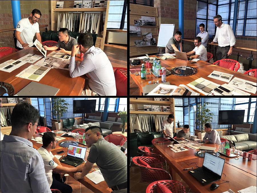 虽然本次DND道恩是代表国内船东进行项目监造,但也抱着学习取精的心态到访阿兹慕,揭开游艇制造业翘楚的神秘面纱:厂房干净整洁、工人分工明确,虽然仍不乏传统的手工制作,但在板材切割、定位等也借用了工业化设备的辅助,以精准彰显品质和效率。抽真空技术的应用已经延伸到了甲板柚木的铺设。每艘游艇都悉心搭配了一系列的材料样本和软装陈设。在看到差距的同时,DND道恩认真思考把学到的经验用于今后国内游艇设计生产中,获益良多。
