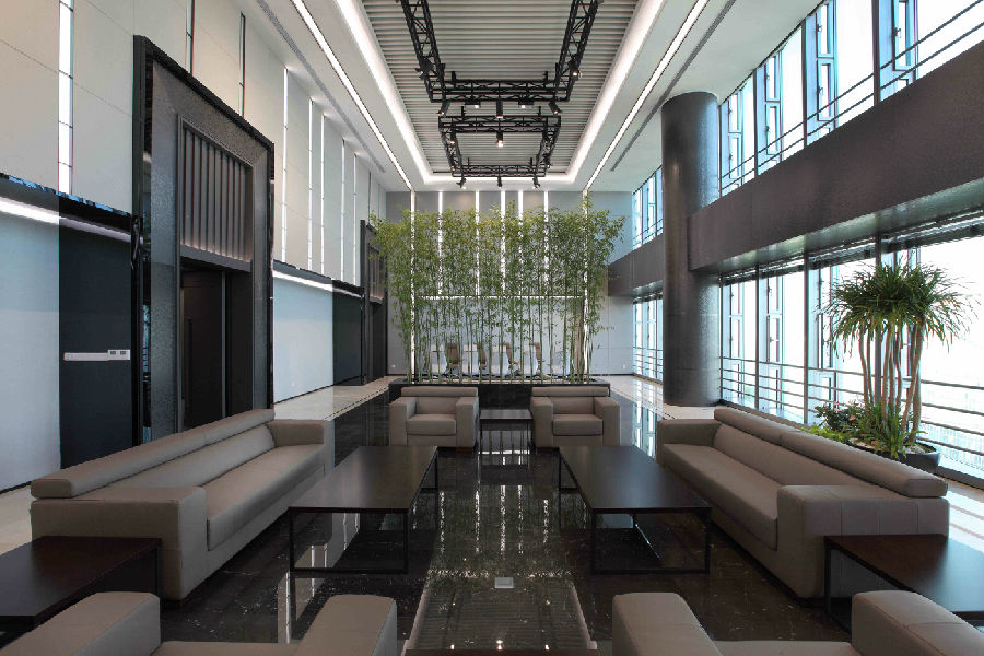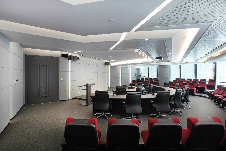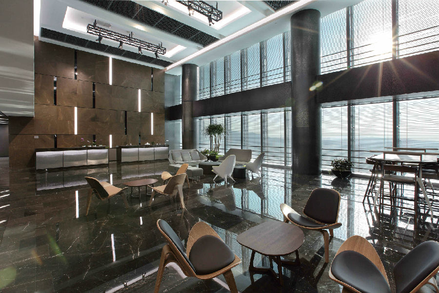 广阔的空间分布,结合抗风压及抗震性能显著的玻璃幕墙,确保明亮光线充盈的同时,巧妙使用大型办公家具的点缀,减少给人以空旷之感。游刃有余,而不失活力,突出财富精英氛围。