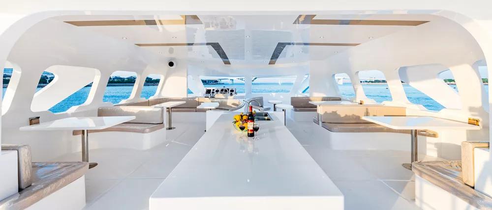 在东南亚海岛运营商的邀请下,DND道恩经过多轮设计探讨,突显私人定制概念,采用全球首创的流线型双体造型设计,独具艺术气息与时尚魅力。
