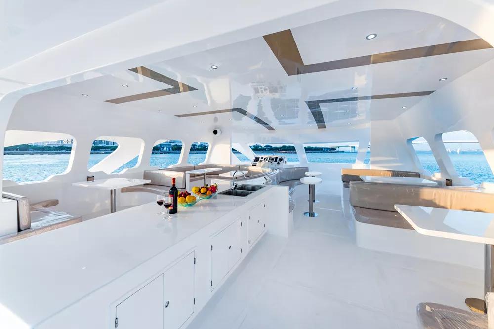 同样源自海洋的灵感,DND道恩团队却以一艘精致、优雅、浑然天成的72尺双体豪华游船充分展现海的温柔,散发天然、安逸、舒适的度假氛围。