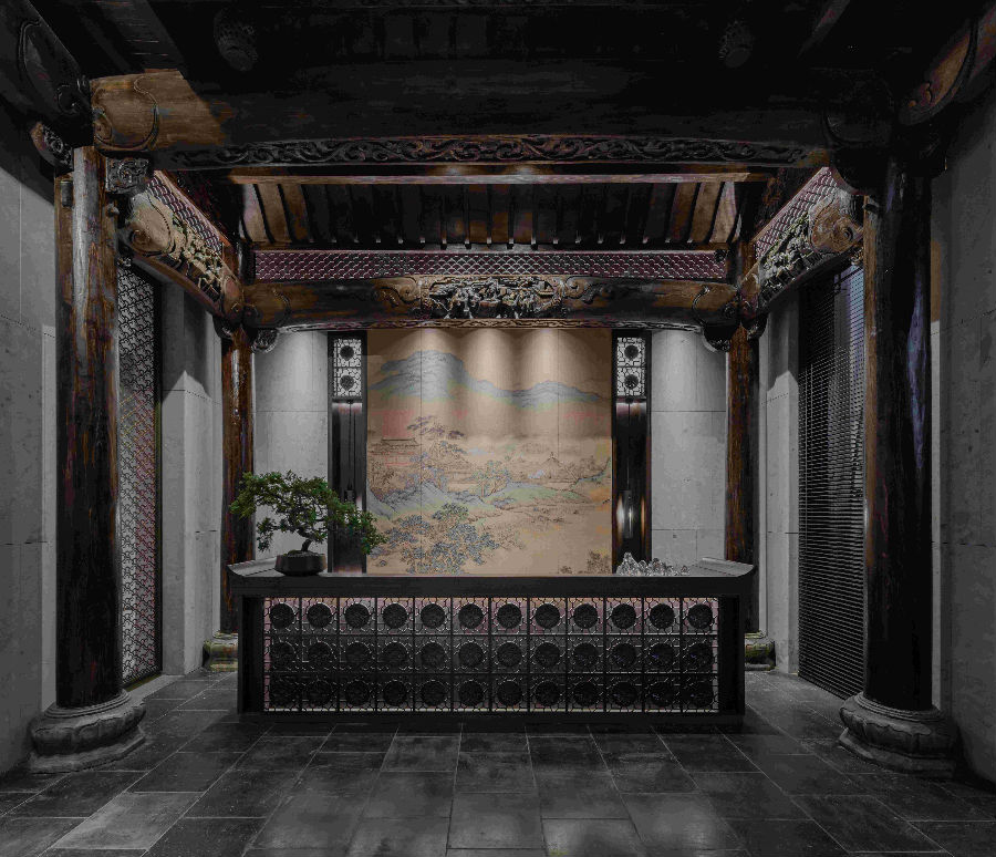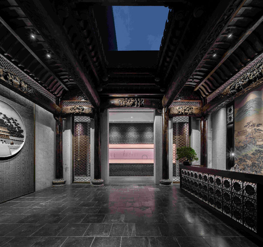 中国古建筑修复大师汪政青参与结构设计。中式巧思深入建筑精髓,细节处处散发中式韵味。地砖采用古代皇族御用金砖,低调而雍容。