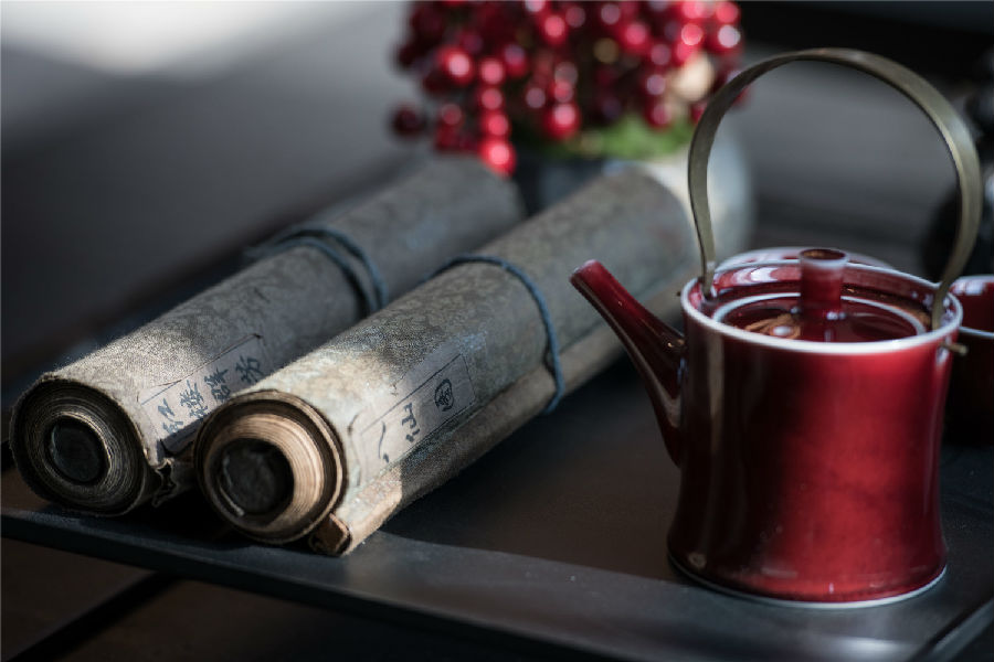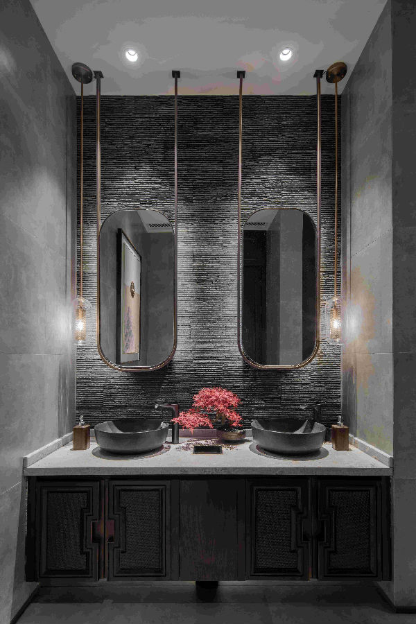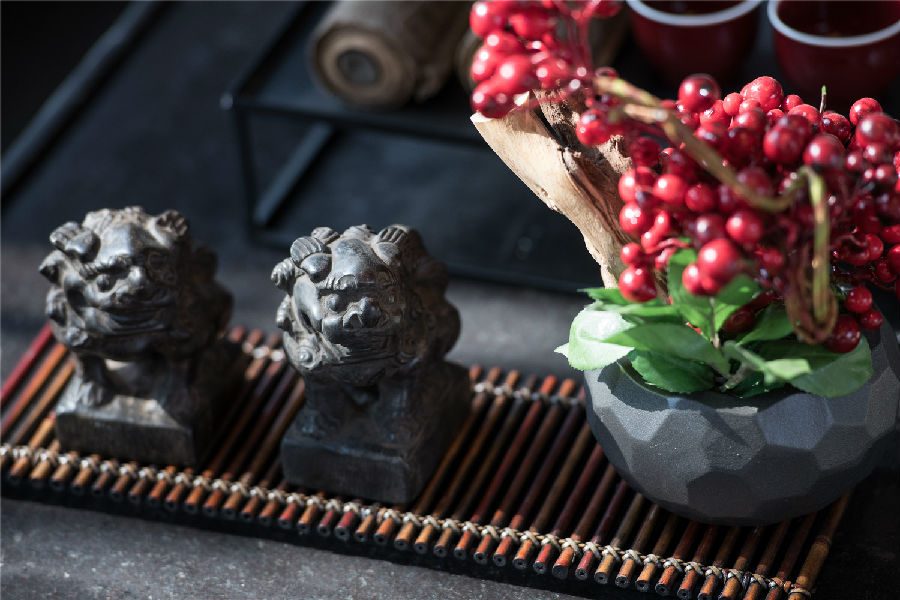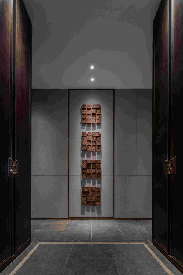 古朴、洗练、纯粹的中式瓦片装饰墙面。原物的素色、纹理与地面相配,将繁华隔绝于外,映衬不喧闹的平和内在。